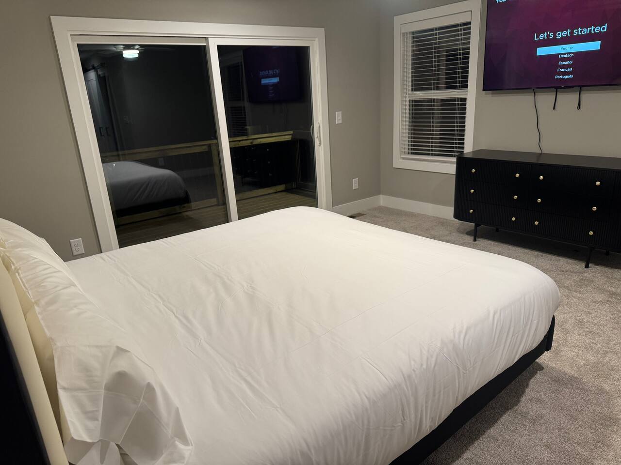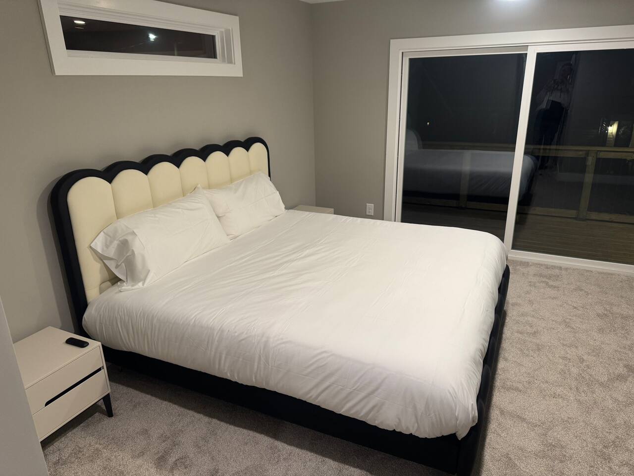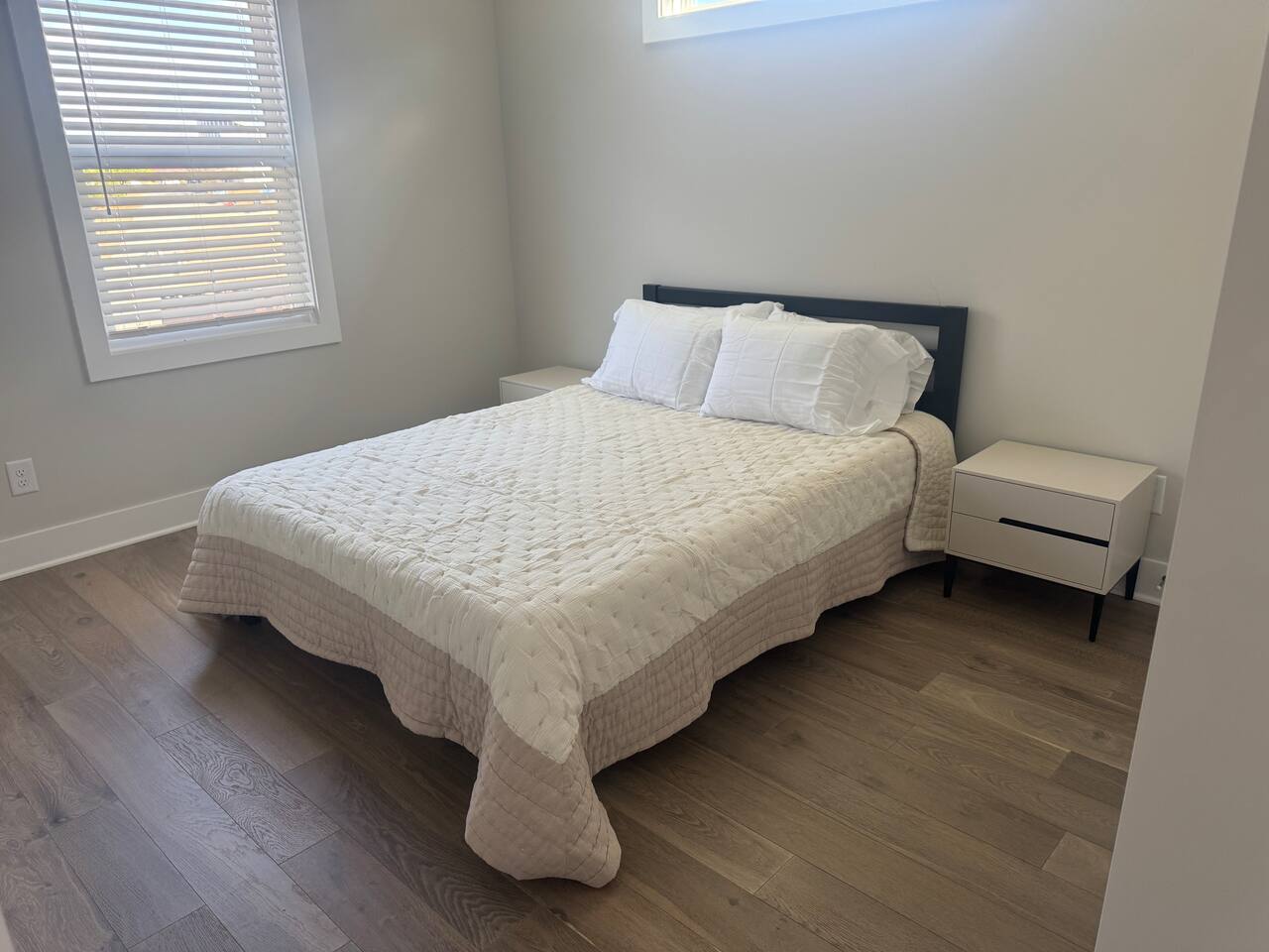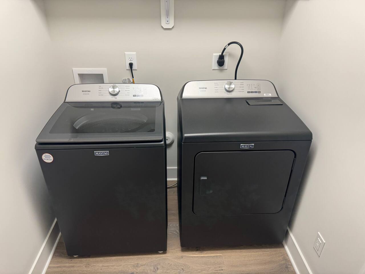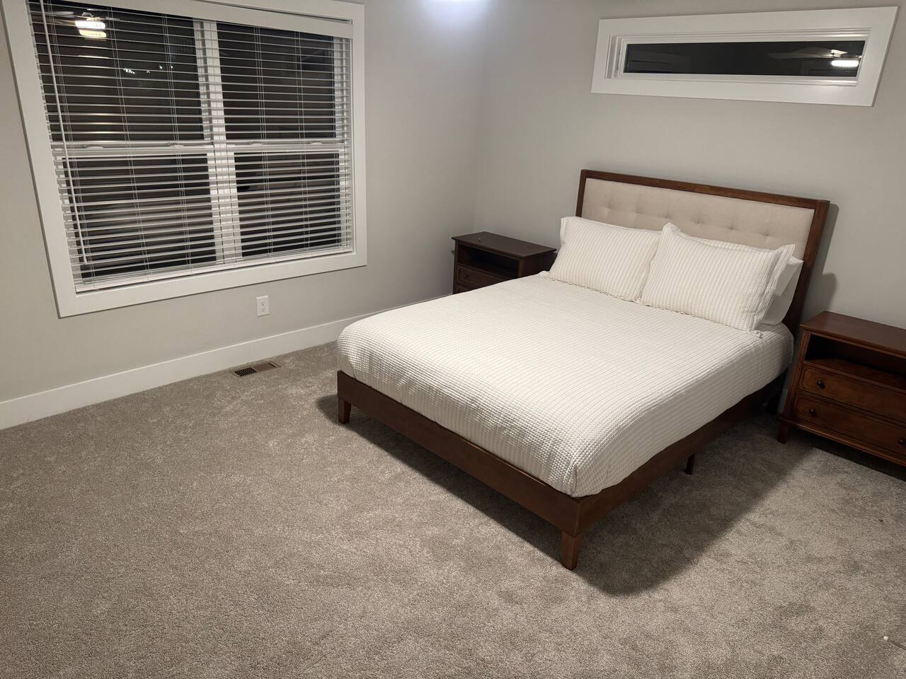 New home with beautiful open concept plan, with well stocked kitchen that includes all the basics for your stay. Comfy living room with Roku TV for streaming all your favorite shows. First floor hallway full bath. First floor guest bedroom with queen bed. Upstairs there are two full en suite bedrooms . The primary suite is a spacious room with a workspace and a beautiful modern bedroom set as well as a gigantic walk-in closet . The secondary en suite upstairs Has a full bath as well and a more contemporary design, with a nice view of the backyard and the state fairgrounds off in the distance. The upstairs laundry room provides two high capacity systems for your use. Pack n play and blow up twin mattress available for little ones.